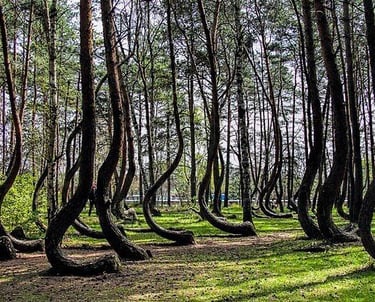 This spooky woodland is full of creepy curved trees. Nobody knows what makes them grow in such a strange way.