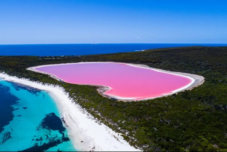 Scientists are still not sure why this peculiar Australian lake is very pink. The water looks more colorful from above but it is still rosy when you put it in a glass.